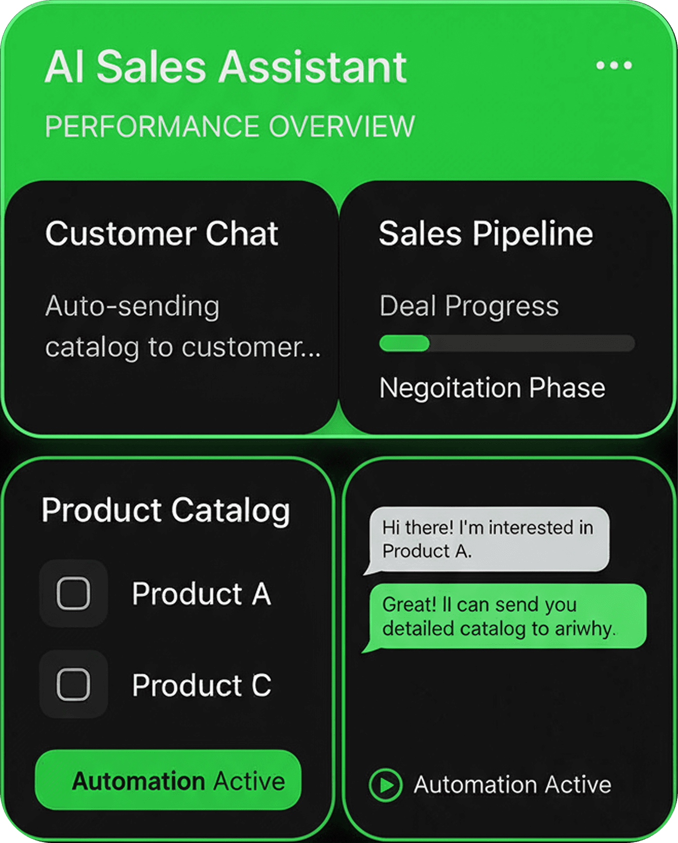 Guide customers, send product catalogs, and close deals faster using AI-powered automation.